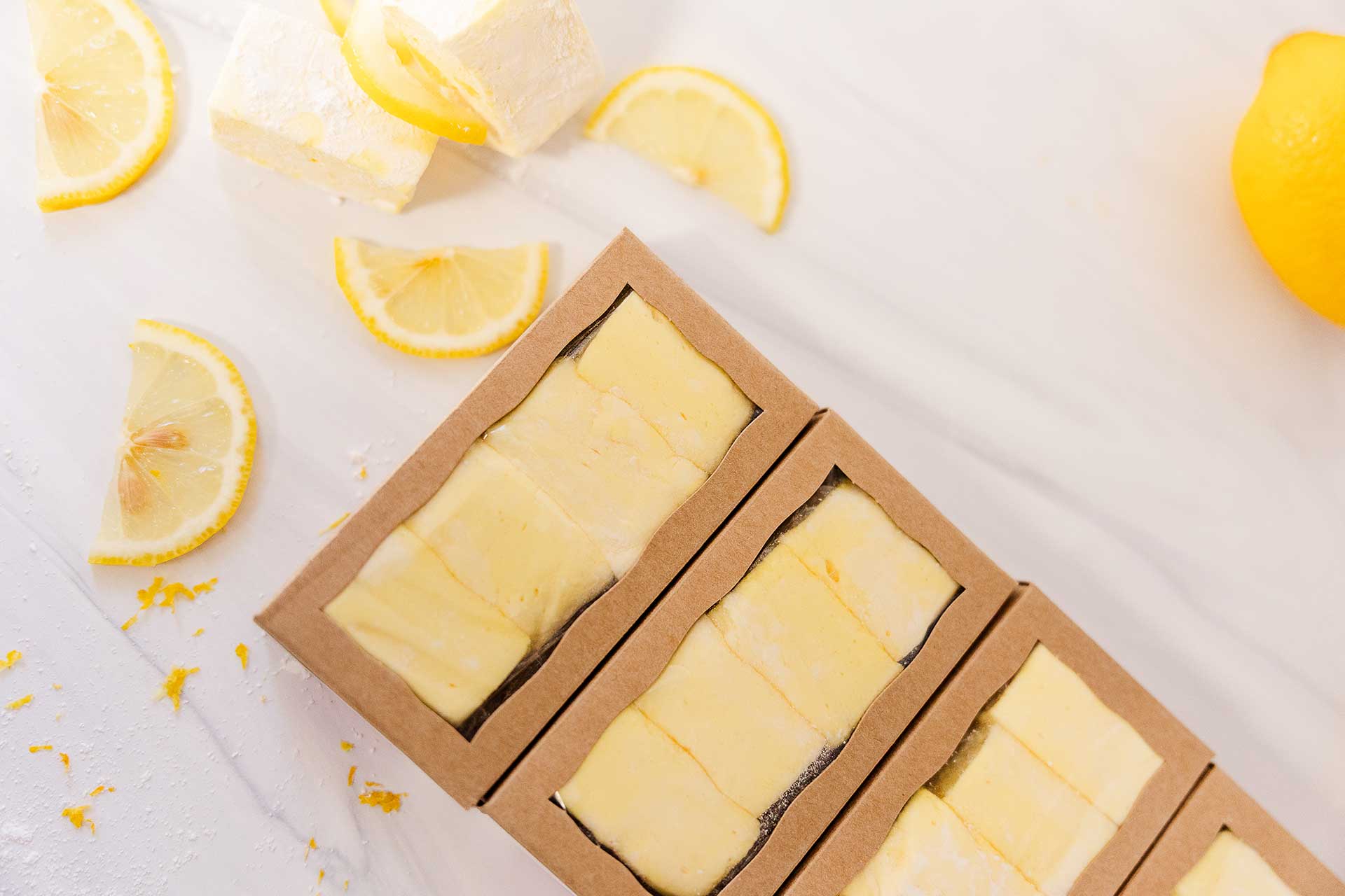We use genuine lemon extract made with real lemon oil, not artificial flavoring. The bright citrus notes add a refreshing twist to our signature marshmallow texture that’s been perfected over 15+ years.