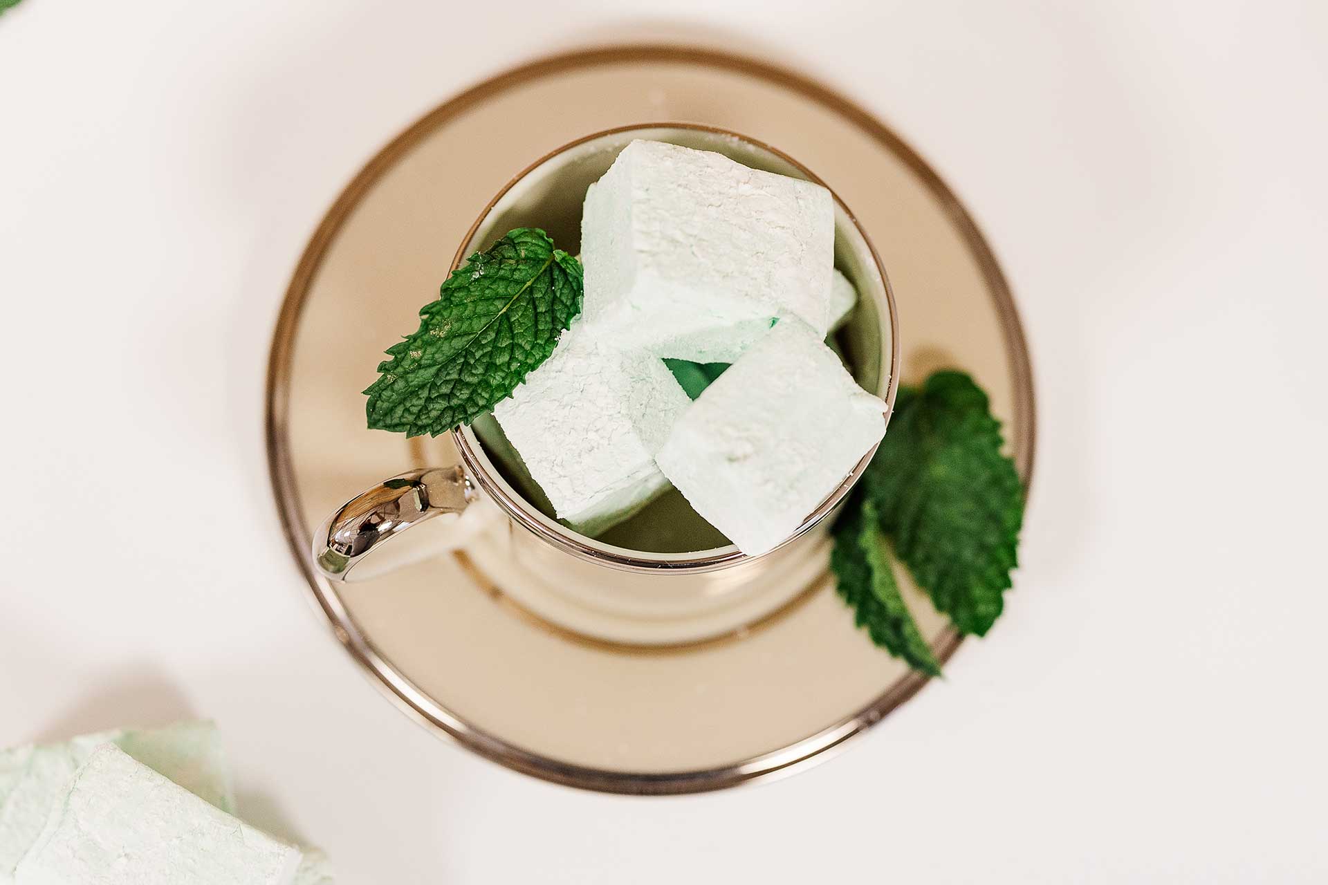 We use genuine peppermint extract made with real peppermint oil for that authentic, crisp mint flavor that’s both cooling and comforting; no artificial mint flavoring, just pure peppermint essence in our signature marshmallow texture, perfected over 15 years.